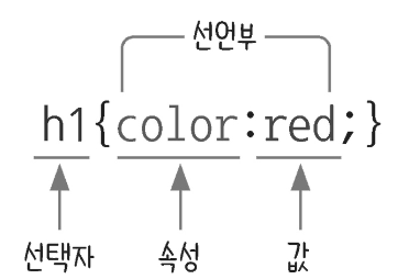 선언부 : 선택자에서 선택한 태그에 적용할 스타일을 작성하는 영역.