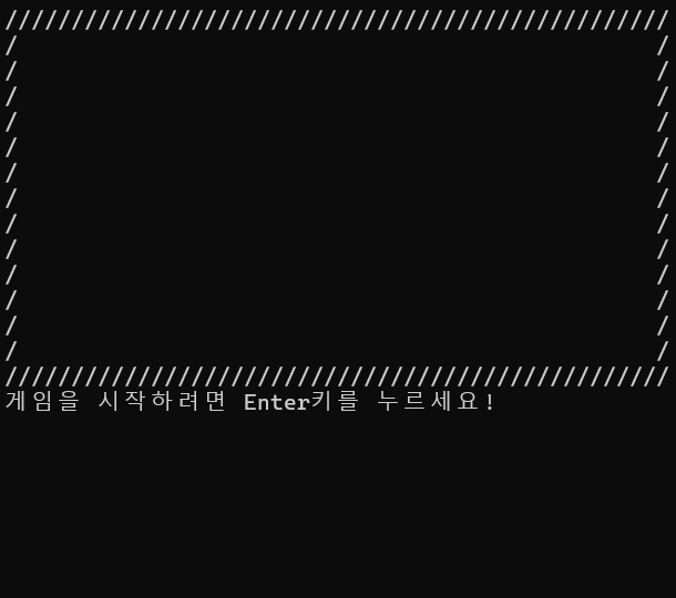 <6>: 게임시작 멘트(게임을 시작하려면~)을 지우기 위해 커서의 위치를 한 칸 올려준다. 그후 <5>에서 사용자가 실수로 엔터 키가 아닌 다른 문자를 입력한 경우에 대비하여 2개의 줄을 공백으로 지워준다. 공백의 길이보다 사용자의 입력이 길면 뒷부분이 지워지지 않는 문제가 있을 수 있다. 하지만 한 줄만 완벽하게 지워주는 코드를 모르겠어서 우선은 위와 같이 만들었다.