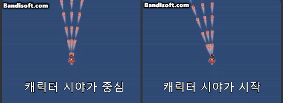 만약 뒤의 보정치가 없다면 위 아래 대칭이 안맞는 상태로 내가 바라보는 방향 기준 한 쪽으로만 발사체가 퍼져나갈 것이다.